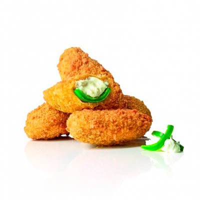 Chiles jalapeños rellenos de suave queso crema, con el equilibrio perfecto entre picante y cremosidad. Ideales como snack, botana o acompañamiento.